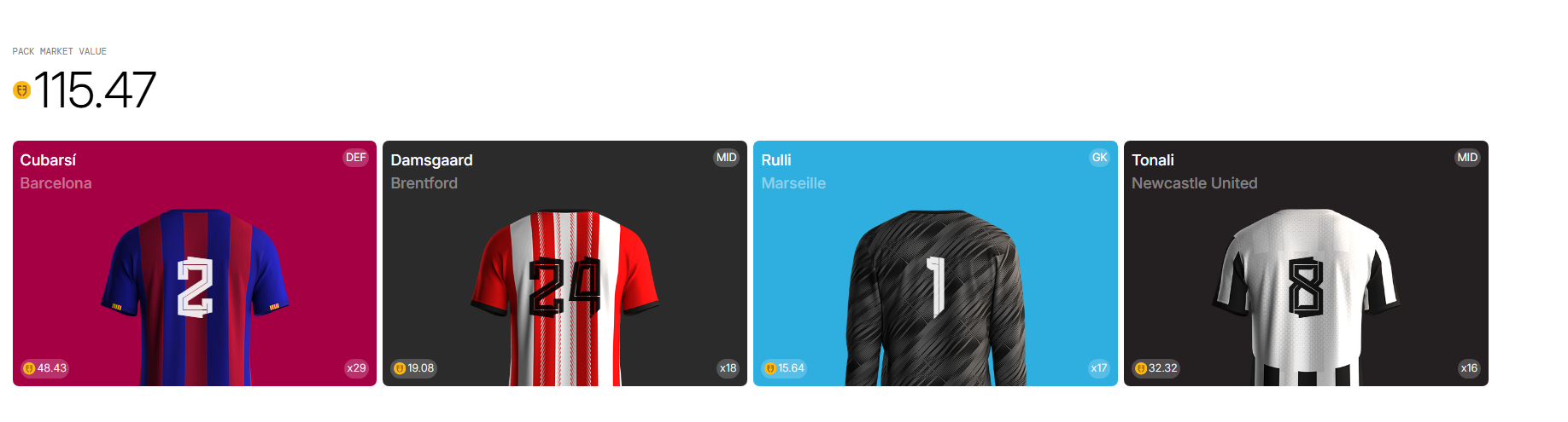 The cost of a pack is dynamically determined at the start of each tournament. This is to ensure that the distribution of players into the ecosystem aligns nicely with the earning of Tournament Points. The players from opening packs get sent to your Development Squad, where you then have to decide who you want to promote to active squad, or cut for a % return in Tournament Points.