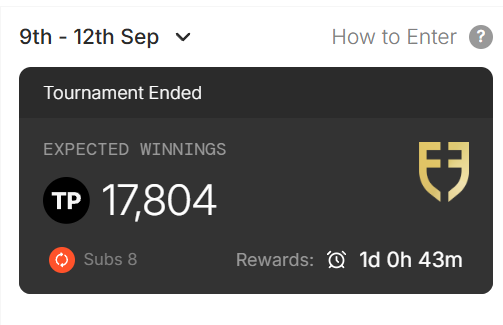 Live matches will update your estimated TP reward if a sub triggers & will also adjust if penalties are in place.