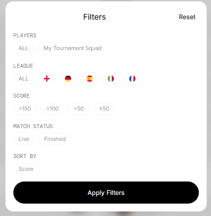 Live Score Filters