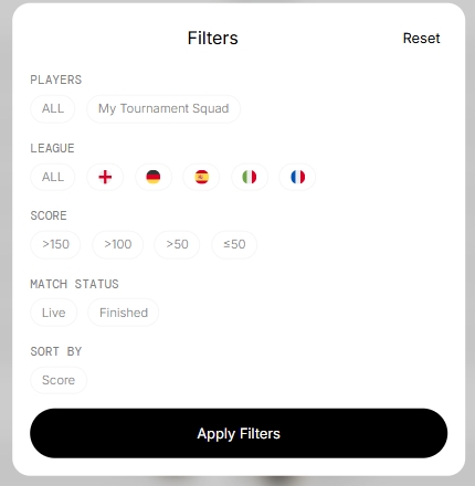If you then click on the filter button, you can find further ways to find players and their scores. The most useful objectively being the 'My Tournament Squad'.