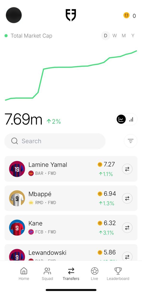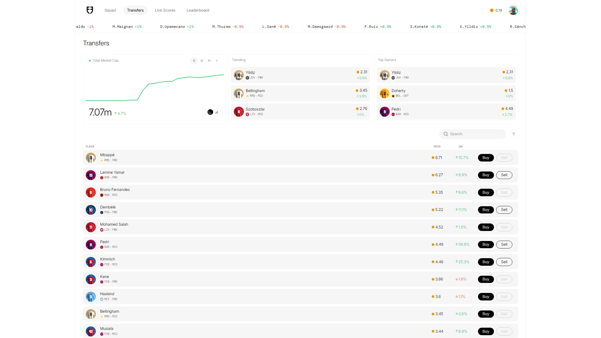 The Transfers page is where you can get an overview of the player market on the platform. There’s a Trending section, Top Gainers section which gives a quick glance into who’s being traded the most at the moment of viewing.